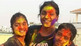 Roja Celebrating Holi with her Kids