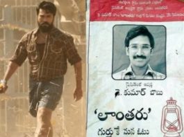 From the set erected in Hyderabad, a photo has now leaked, showcasing a poster of hero Aadhi where he’s seen requesting votes. The poster reads, “K Kumar Babu, candidate for president, Vote for Lantaru symbol”. And that is enough to find out what are we going to see inside this village drama being directed by Sukumar.