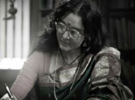 The promising first look poster features Manju Warrier in the get-up of the young Madhavikutty. The actress sports the look of the writer, with traditional silk saree, long hair, oversized spectacles, and big stone nose pin.