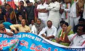 Srinivas along with state Congress chief Raghuveera Reddy and leaders of Communist Party of India (CPI) took part in a protest outside the Jawaharlal Nehru Bus Stand in Vijayawada.