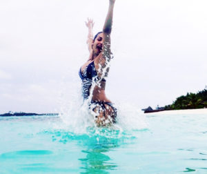 The bikini she wore is of aqua blue colour and water has been splashed at the right timing. Malaika is seen enjoying the water play and the picture looks all happy. She also maintained her curvy body quite well all these years and hence, she is still one of the hottest B-town celebs today. Her viral workout videos have also been inspiring to young ladies to maintain a healthy lifestyle.
