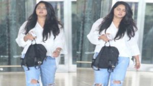 Anyway, the glow that radiates around Anushka is quite exciting to notice because she is fabulous in whatever way she appears. It looks like princes Devasena is walking in a modern outfit down the corridors of Shamshabad airport.