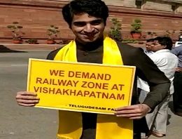 On Tuesday, however, there was some refreshing change in their protests. Siddharth Galla, the younger son of TDP MP from Guntur Galla Jayadev, came to Delhi to join the protests.He also held placards and raised slogans along with the other MPs and instantly, the media persons and camera persons showed curiosity to know who he was.A TDP leader commented that, “Siddharth really gave a glamour touch to the agitation and provided relief to the routine dharnas. Though he did not speak much, his presence gave us some attraction and attention from the media,” he said.