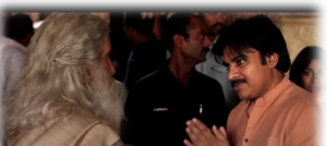 Apparently the features the shot of Pawan Kalyan where he went to the sets of Sye Raa when Superstar Amitabh Bachhan is shooting in Hyderabad for the movie. Back then, pictures of Pawan visiting the place and the news of it are out. But now that Megastar’s film has featured the Powerful brothers, there is no stopping for the happiness of fans.