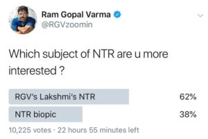 Sharing the result of a twitter poll, where 60% people voted that they will see Lakshmi’s NTR than NTR Biopic, Varma added, ‘This is because more people want to know truth than less people want to hear lies’. The first thing is, how come Varma think that those who want to see Lakshmi’s NTR are seekers of truth and others are not?