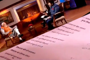 Interestingly, in the papers put out by the news channel, there is a question where the interviewer asks Modi whether he has written any poem or a few lines recently. To this, Modi narrates a poem he claimed to have written. Unfortunately, the clips which have gone viral clearly show how both the question and answer have been written already.